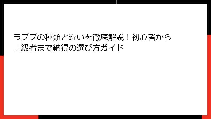 - 自分にぴったりのラブブを選ぶコツ!種類の違いを活かした活用法