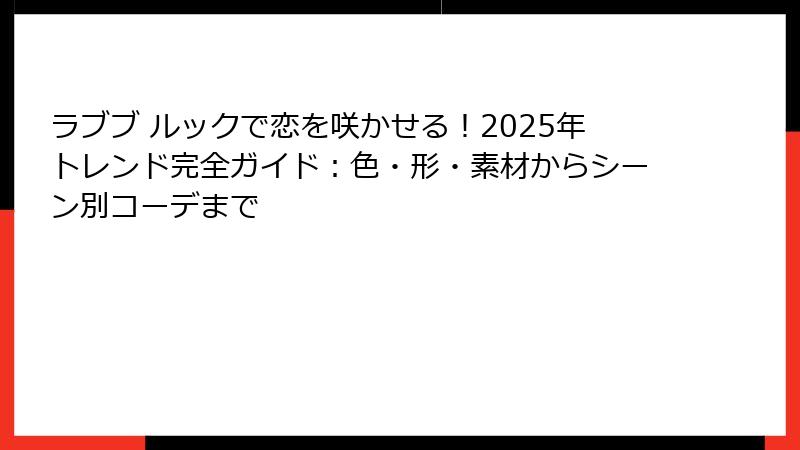 あなたは、街を歩くだけで周囲の視線を引き寄せ、恋のチャンスをぐっと引き寄せるファッションスタイルを夢見たことはありませんか?そんな願いを叶えるのが、今話題の「ラブブ ルック」です。