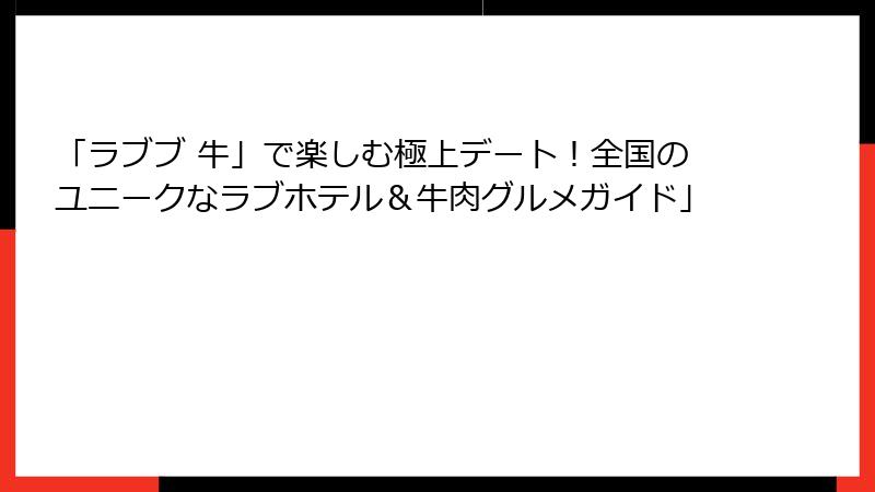 「ラブブ 牛」というキーワードは、このテーマ型ラブホテルの一つの形として、牛をモチーフにした施設や牛肉グルメとの融合を指します。
