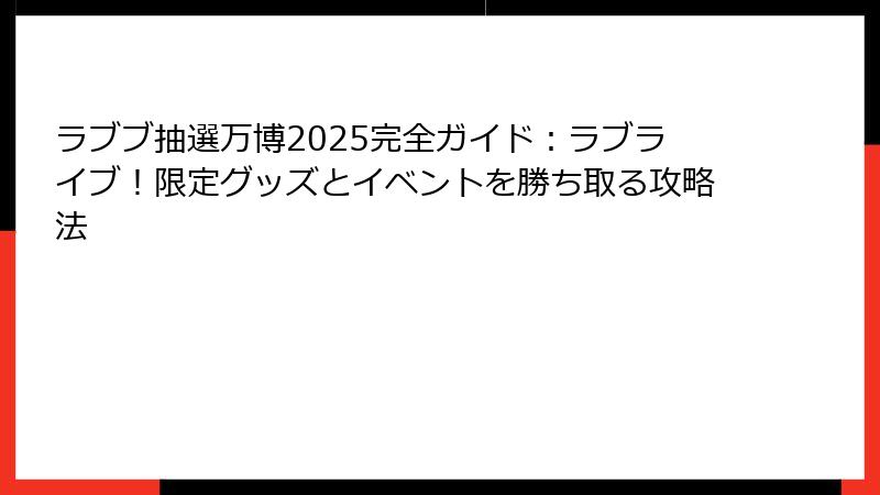 - ハッシュタグ: #ラブブ抽選万博、#推しと万博、#ラブライブ万博2025。