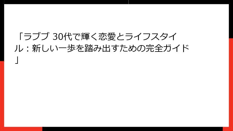 30代という年齢は、人生の節目であり、恋愛においても新たな可能性と挑戦が広がる時期です。