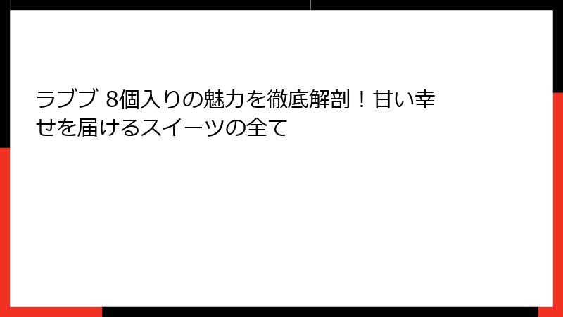 ラブブ 8個入りは、ただ食べるだけでなく、あなたのライフスタイルを甘く彩る存在。