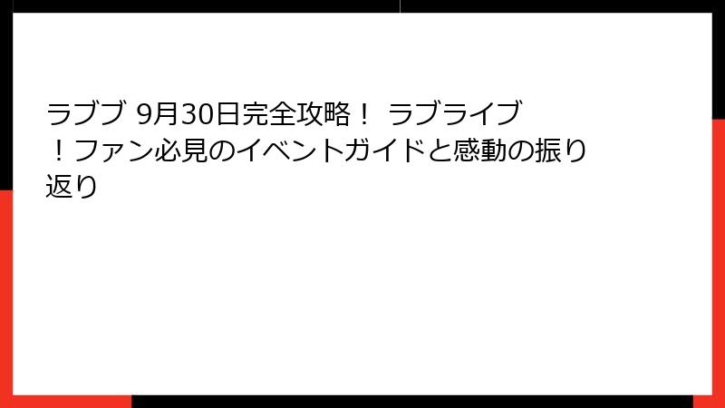 この記事では、ラブブことラブライブ!の9月30日に関する情報を詳細に掘り下げ、イベントの背景から見どころ、参加方法までを徹底解説します。