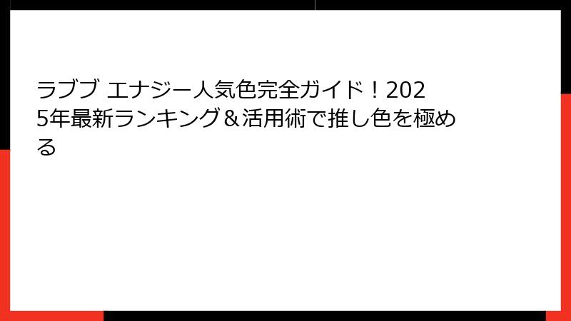 - ラブブ エナジー人気色ランキング2025!黒シークレットが1位の衝撃データを公開