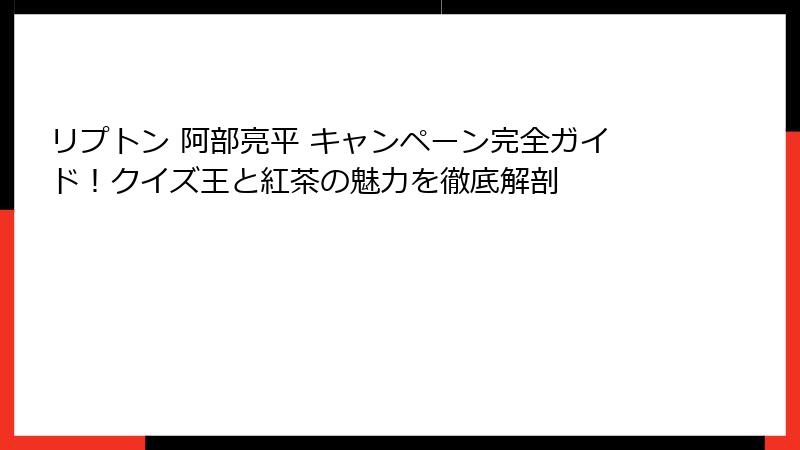 リプトン 阿部亮平 キャンペーンは、リプトンの紅茶ブランドが、Snow Manのメンバーであり、クイズ番組で輝く阿部亮平を起用した特別企画です。