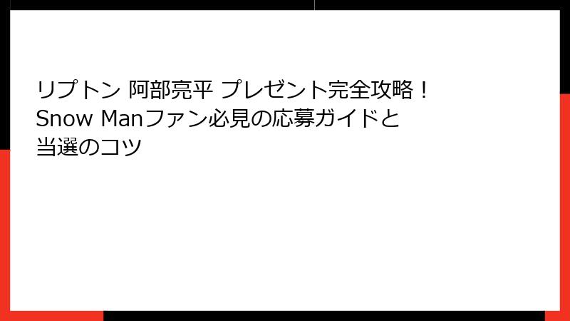 Snow Manファンなら誰もが心躍る「リプトン 阿部亮平 プレゼント」の魅力に迫り、なぜこのキャンペーンが2025年10月の今、絶対に参加すべきなのかを紐解いていきましょう。