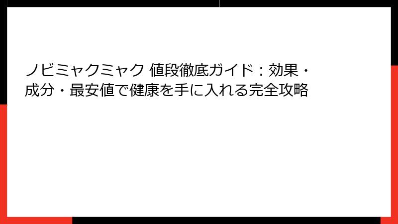 これらのポイントを守ることで、ノビミャクミャクの値段に見合う安全な健康投資が実現します。
