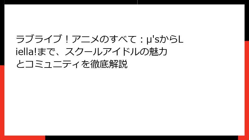 この記事では、「ラブライブ アニメ」の基本情報からその魅力まで、初心者から熱心なファンまでが楽しめる内容を詳細に掘り下げます。