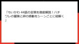 - 初めての感動:ちいかわの純粋な行動やハチワレの優しさに心を掴まれる。