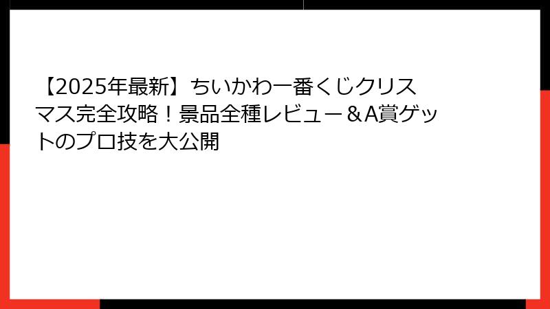 - 確実にA賞を引き当てるコツ!ちいかわ一番くじクリスマス抽選確率アップのプロ級テクニック10選