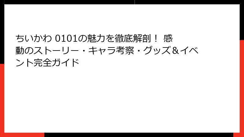 この記事では、「ちいかわ 0101」のあらすじから、キャラクターの深層心理、隠されたメッセージ、さらには関連グッズやイベント情報まで、徹底的に掘り下げます。