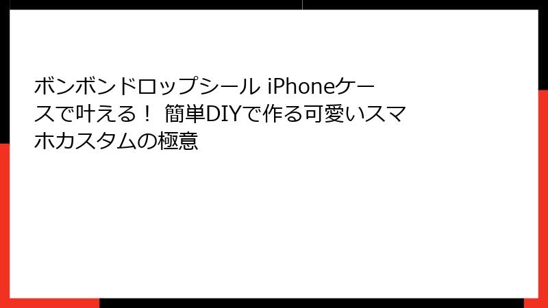 この記事では、ボンボンドロップシール iPhoneケースの魅力を徹底解説し、具体的な作り方や活用法までを後半で詳しくお伝えします。