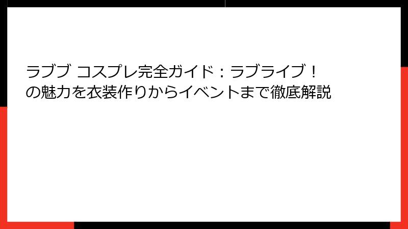 ラブブ コスプレ完全ガイド:ラブライブ!の魅力を衣装作りからイベントまで徹底解説