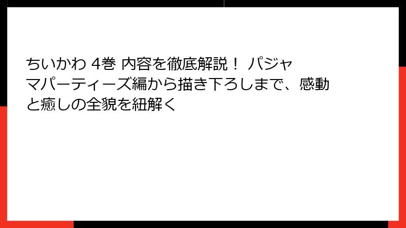 特に、ファン待望の「パジャマパーティーズ編」や「ちいかわの夢編」が収録されており、笑いと感動のバランスが絶妙! この記事では、ちいかわ 4巻の内容を徹底的に掘り下げ、ネタバレ満載でその魅力を解説します。