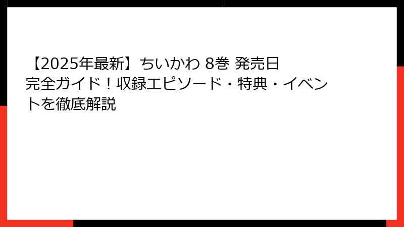 - 発売日を最大限楽しむコツ – ちいかわ 8巻 特典・グッズ・イベント完全網羅