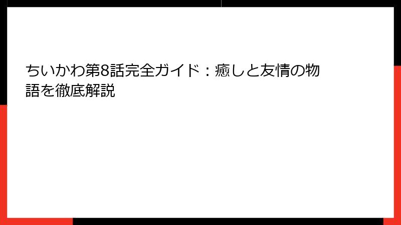 ちいかわ第8話は、日常の中の小さな出来事を描きながら、視聴者に癒しと共感を提供します。