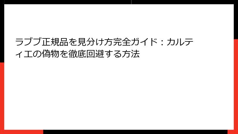 - 偽物の見分け方:具体的なチェックポイントと実践方法