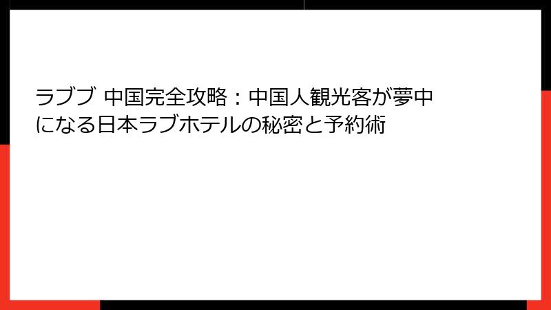 ラブブ 中国完全攻略:中国人観光客が夢中になる日本ラブホテルの秘密と予約術
