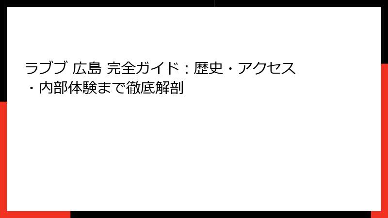 - 迷わず行ける!『ラブブ 広島』アクセス完全ガイド:駅近ルートから隠れ家道まで