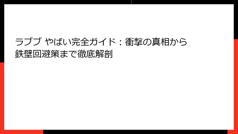 - 本音告白! ラブブ やばい体験談10選~後悔から学んだ教訓