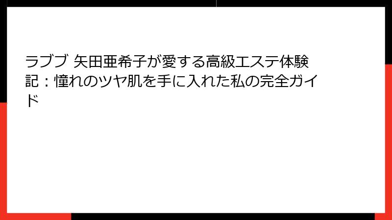 - 今すぐラブブで矢田亜希子のような輝く肌を!私の最終おすすめと予約ガイド