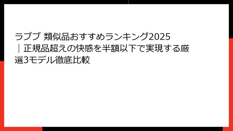 類似品であれば、リスクを抑えつつ、ラブブと同等の快感を体験できる可能性があるため、コストパフォーマンスを重視する層に支持されています。