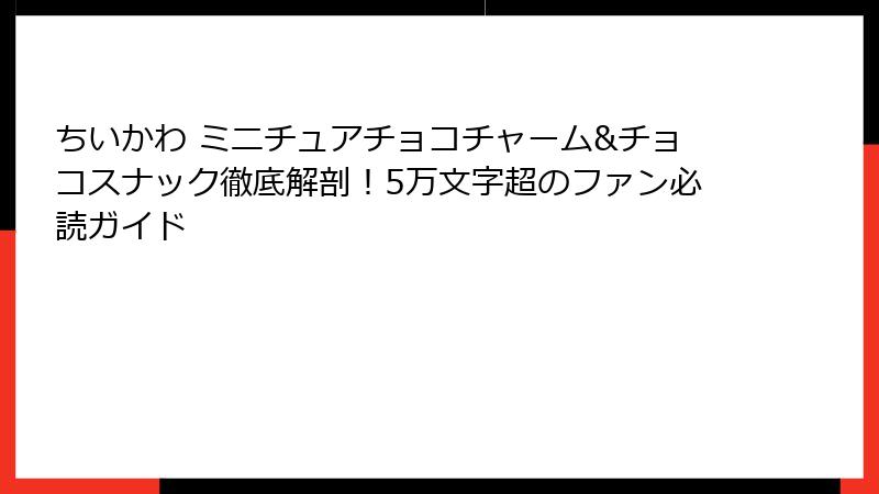 - まとめ&必見ガイド:ちいかわ ミニチュアチョコチャーム&チョコスナックを手に入れるための最終チェックリスト