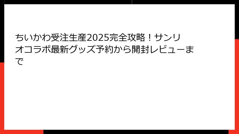 - 2025年最新!ちいかわ×サンリオ受注生産グッズの全ラインナップと予約スケジュール