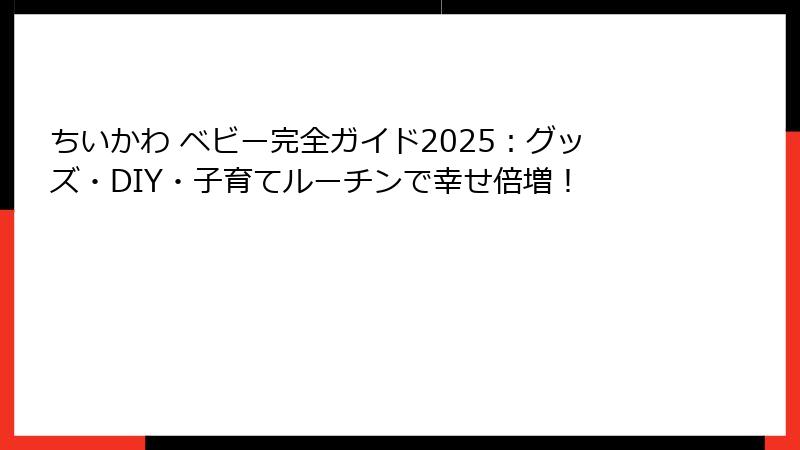 ちいかわ ベビー完全ガイド2025:グッズ・DIY・子育てルーチンで幸せ倍増!