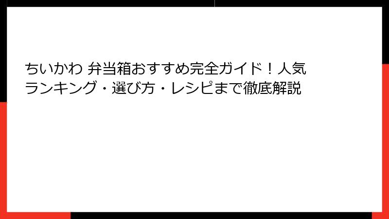 この記事でわかる5つのポイント:ちいかわ 弁当箱完全攻略ガイド