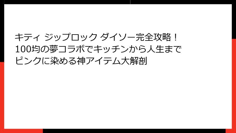 この記事では、「キティ ジップロック ダイソー」の全貌を徹底解剖。