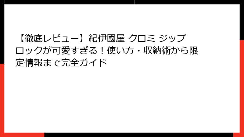- 実際の口コミ大公開!紀伊國屋 クロミ ジップロックのメリット・デメリットを正直に語る