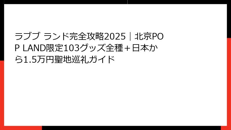 - 日本からラブブ ランドに行く完全計画|2025年最新航空券・ホテル・ビザ攻略