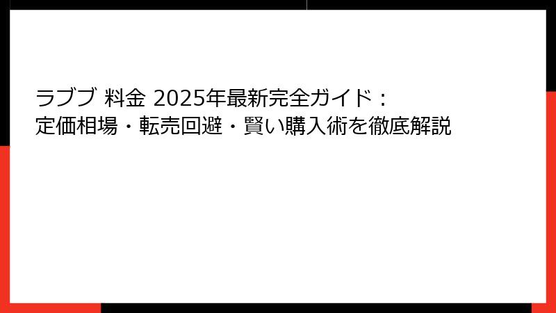この記事では、ラブブの基本情報から最新の料金相場までを徹底的に解説しました。