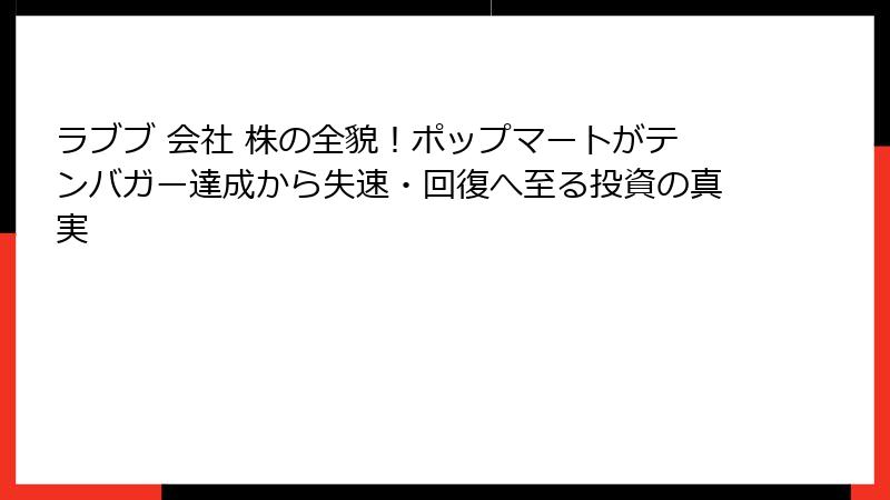 - 「ラブブ 会社 株」の急騰要因を徹底解剖! 業績連動で15倍超のテンバガーを達成した理由