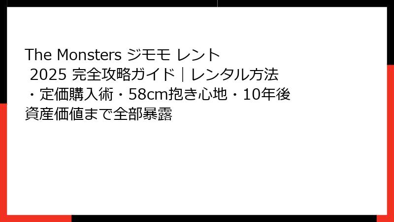 - The Monsters ジモモ レント完全攻略ガイド2025!検索急増の理由から基本知識まで徹底解説