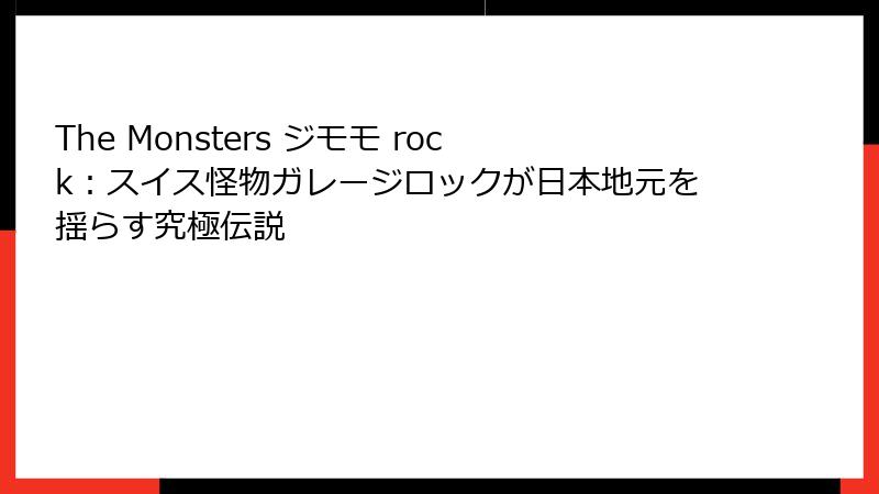 The Monsters ジモモ rock:地元で愛されるスイス・ガレージロックの怪物たちが日本を揺らす理由