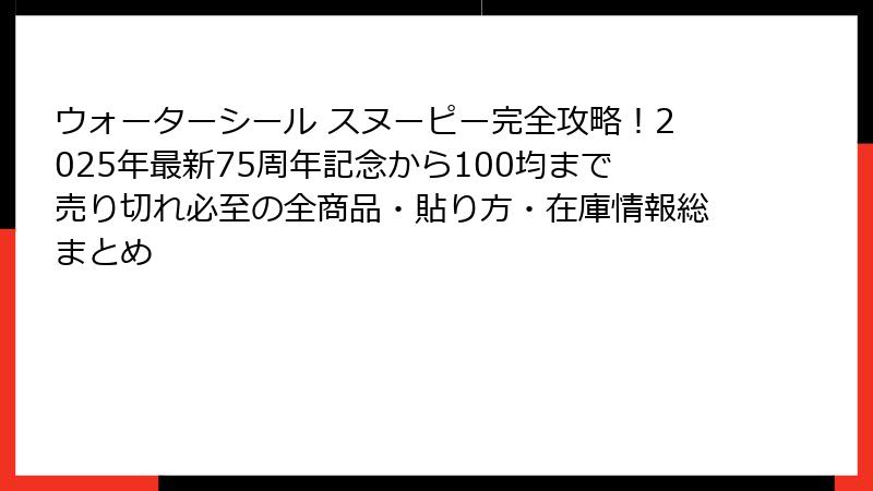 - ウォーターシール スヌーピーの使い方完全ガイド!初心者でも失敗しない貼り方&アレンジ術