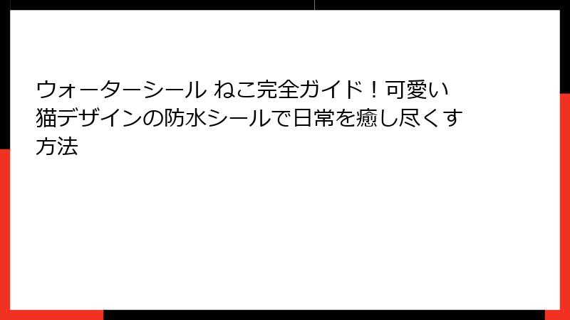 このように、「ウォーターシール ねこ」は単なるデコレーションアイテムではなく、生活を豊かに彩るパートナーです。