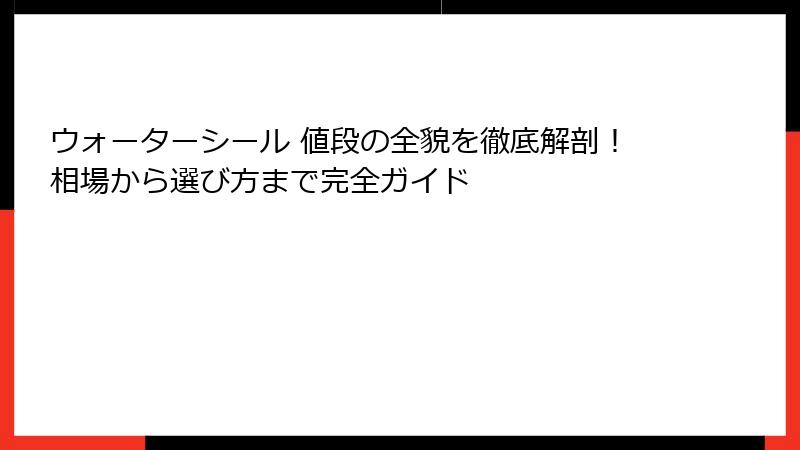 - ウォーターシール値段まとめ:賢く選んでコスパ最高に!