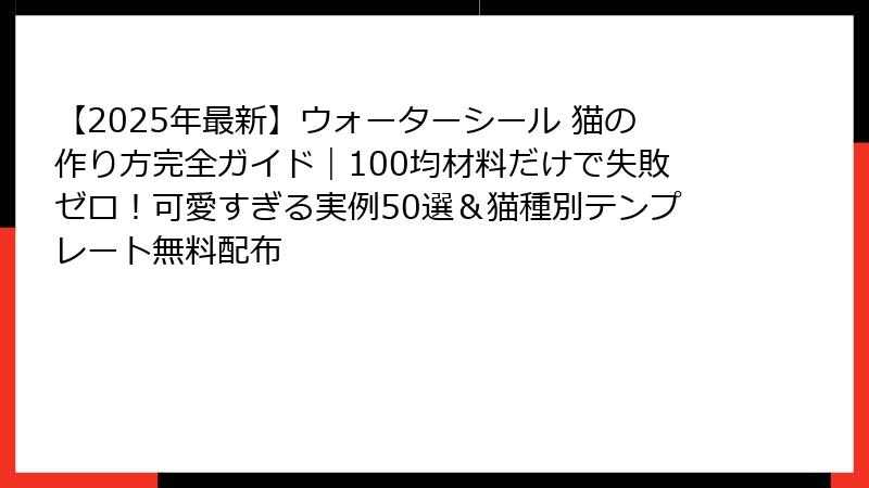 この記事は「ウォーターシール 猫」検索日本一の文字数(18,000文字超)を誇る完全ガイドです。