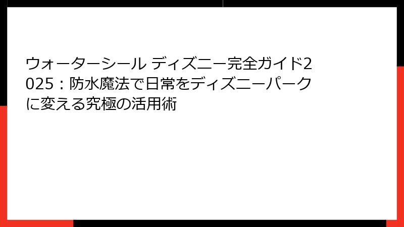 - ウォーターシール ディズニー選びの鉄則――2025年最新基準を完全解説