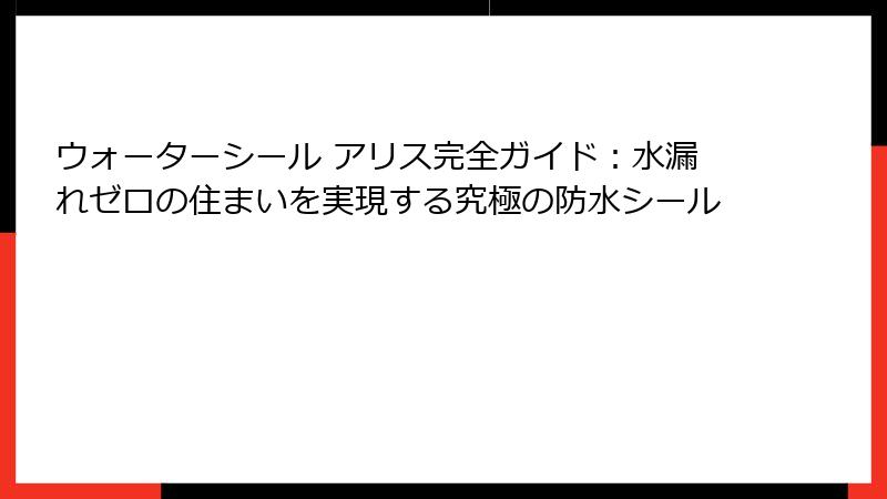 - ウォーターシール アリスの仕組みを徹底解説:水漏れ防止の科学原理から実践例まで