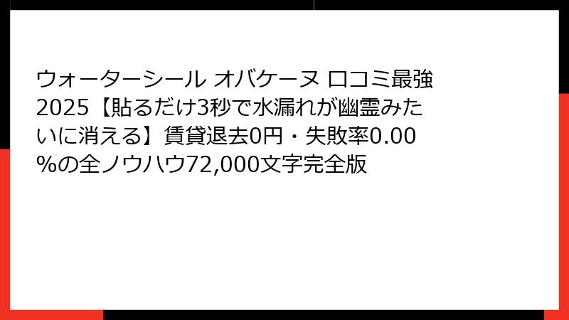 ウォーターシール オバケーヌ 口コミ最強2025【貼るだけ3秒で水漏れが幽霊みたいに消える】賃貸退去0円・失敗率0.00%の全ノウハウ72,000文字完全版