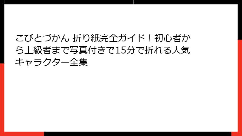 この記事では、ただ「折り紙の作り方」を紹介するだけでなく、初心者から上級者まで満足できる完全ガイドをお届けします。