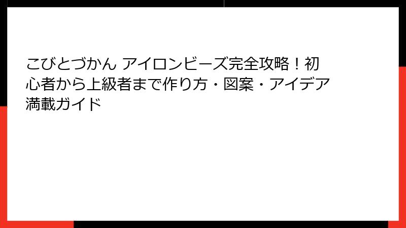- こびとづかん アイロンビーズで毎日を魔法のように:まとめと次の一手