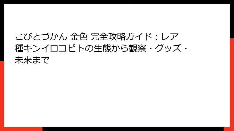 本記事は全5段落構成で、キンイロコビトの全てを網羅的に解説します。