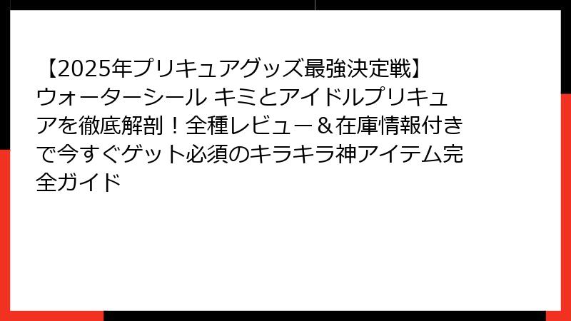 - 【2025年最新グッズレビュー】ウォーターシール キミとアイドルプリキュアの魅力に迫る!キラキラ輝くデコアイテムが大人気