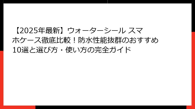 - ウォーターシールスマホケースの選び方完全ガイド!防水性能から素材まで徹底解説