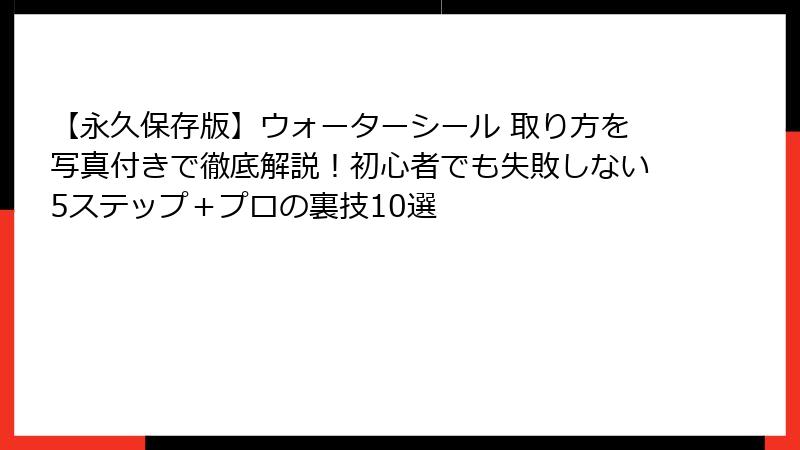 ここからは、いよいよ「ウォーターシール 取り方」の全体像を解説します。